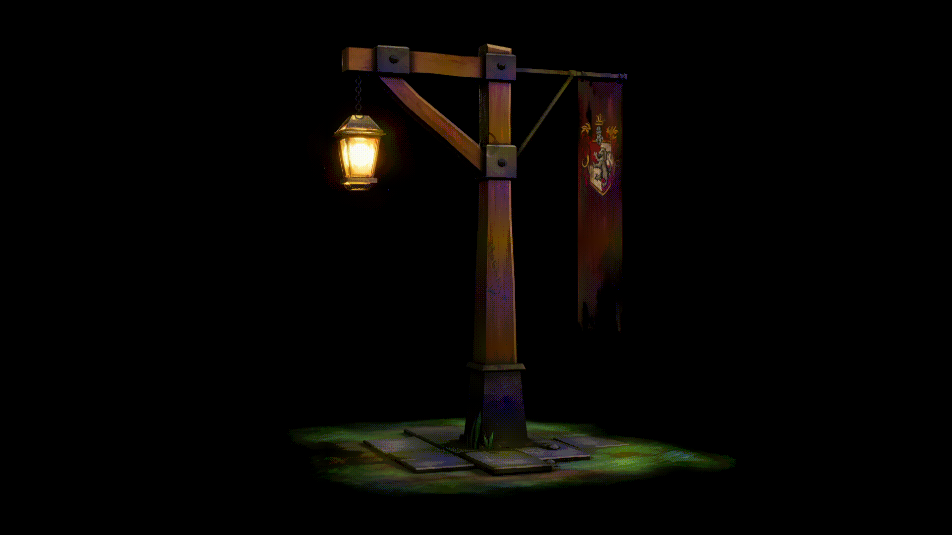Each element was carefully textured, with attention to the finest details. Elements such as the flag and grass were hand-painted. This gave the model an authentic appearance, reminiscent of a scene from Harry Potter. The texturing process utilized the program Substance Painter.
