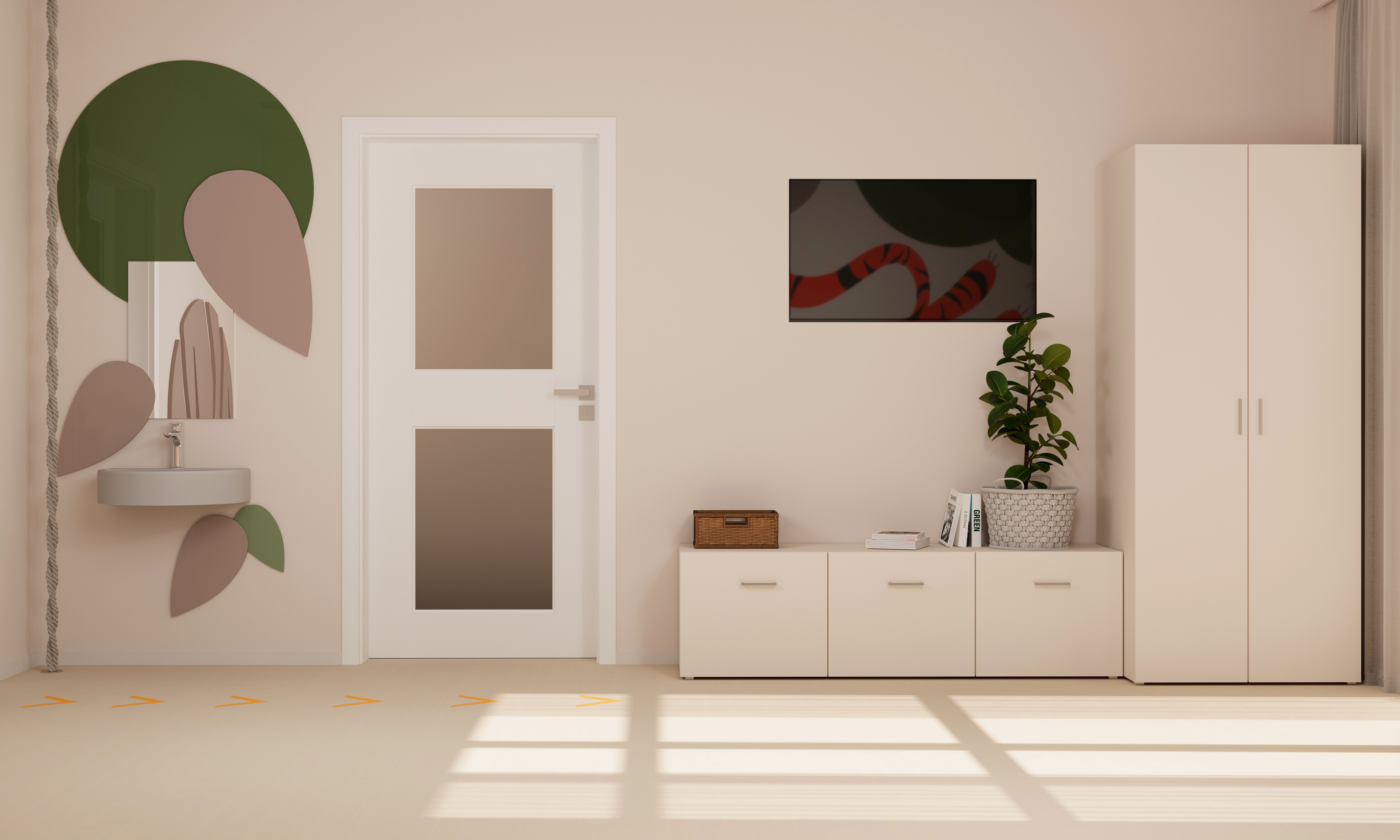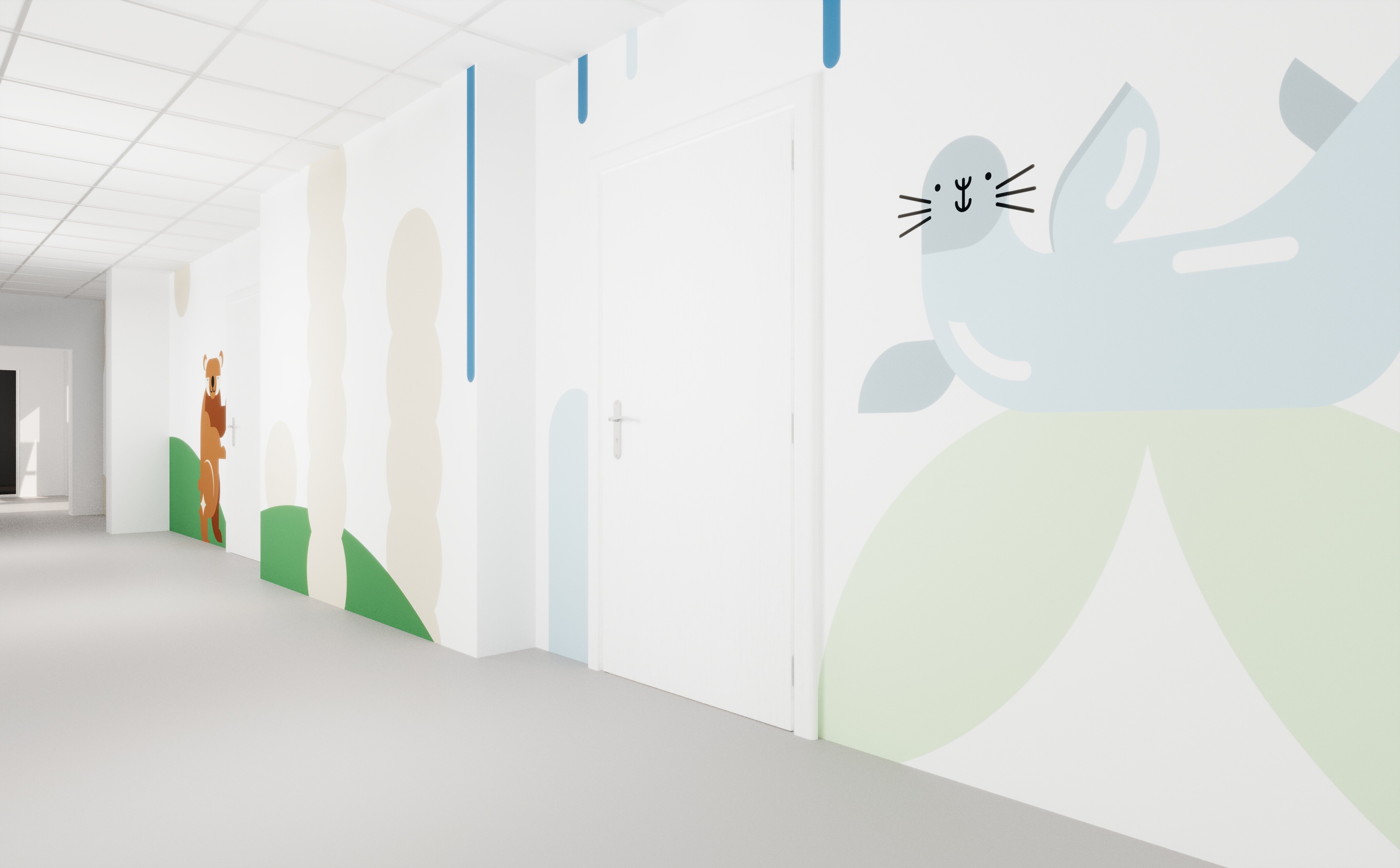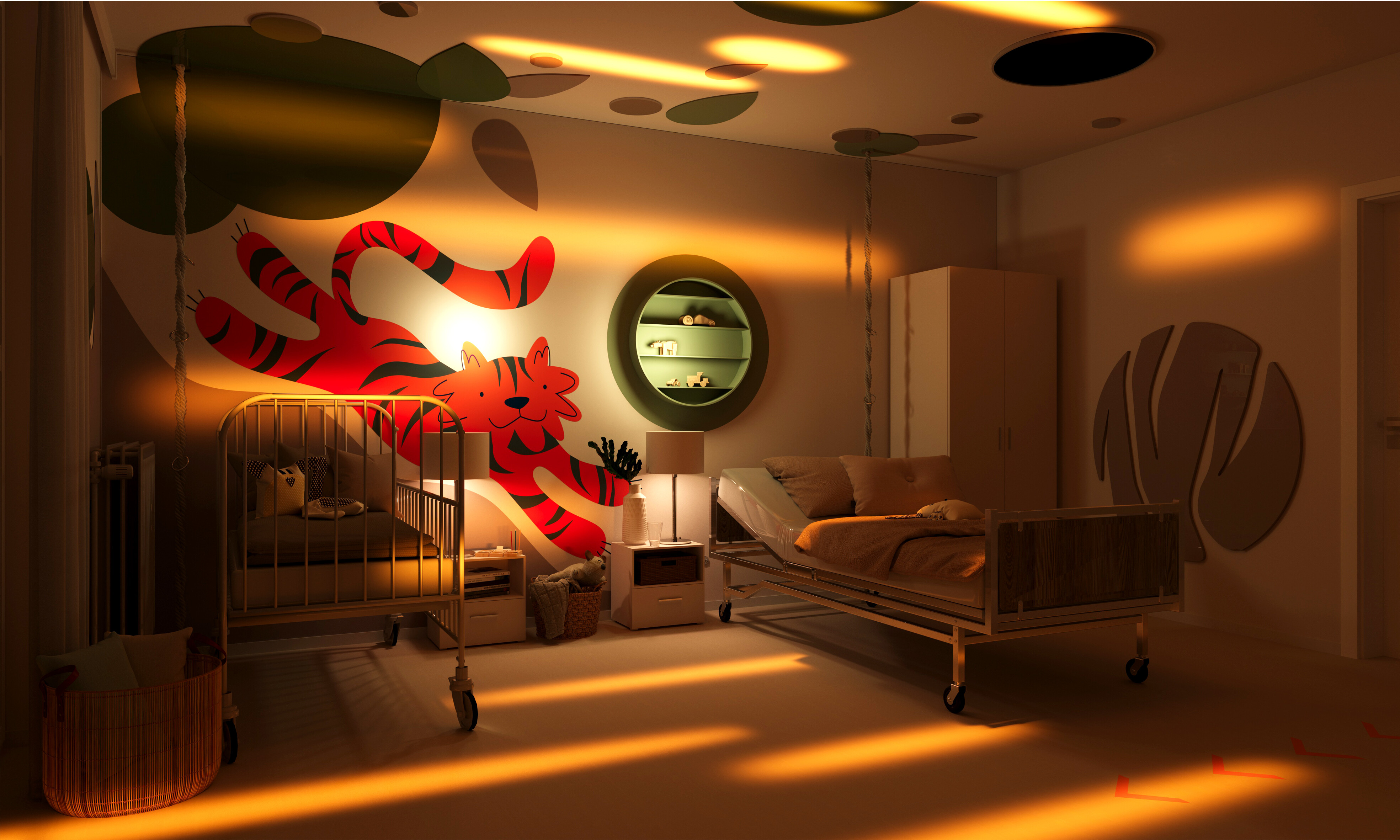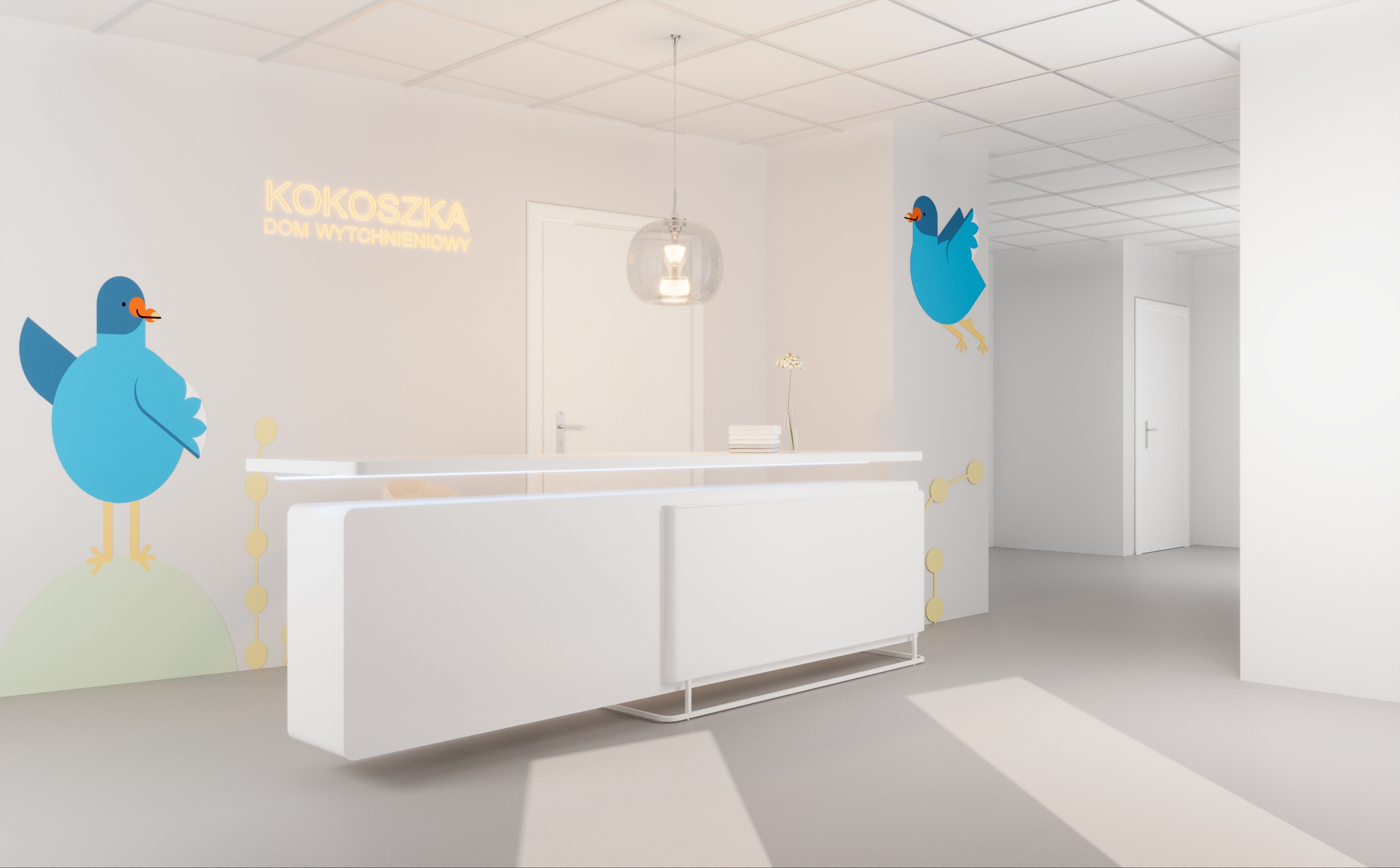Przy projektowaniu hospicjum, z myślą o młodszych pacjentach, postawiliśmy na różnorodność barw, aby stworzyć przyjazne i ciepłe otoczenie, które może pomóc w złagodzeniu stresu i poprawie komfortu psychicznego podczas pobytu w placówce. Naszym celem było stworzenie przestrzeni, która nie tylko spełnia funkcjonalne potrzeby pacjentów, ale również pobudza ich zmysły i zachęca do pozytywnych doświadczeń w trudnych chwilach życia.